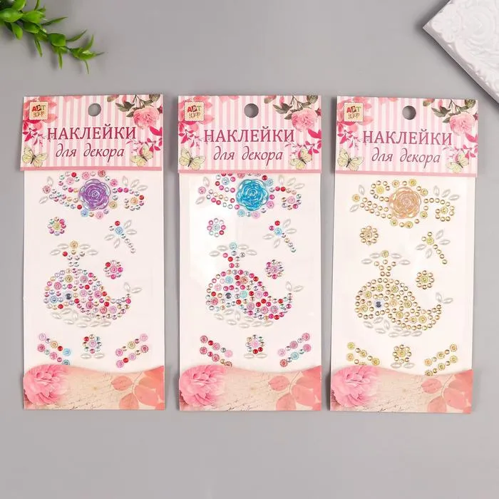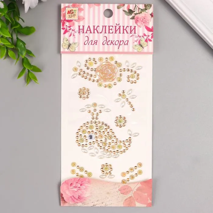 Наклейка стразы пластик "Китёнок и роза" МИКС 19х8,5 см — Характеристики