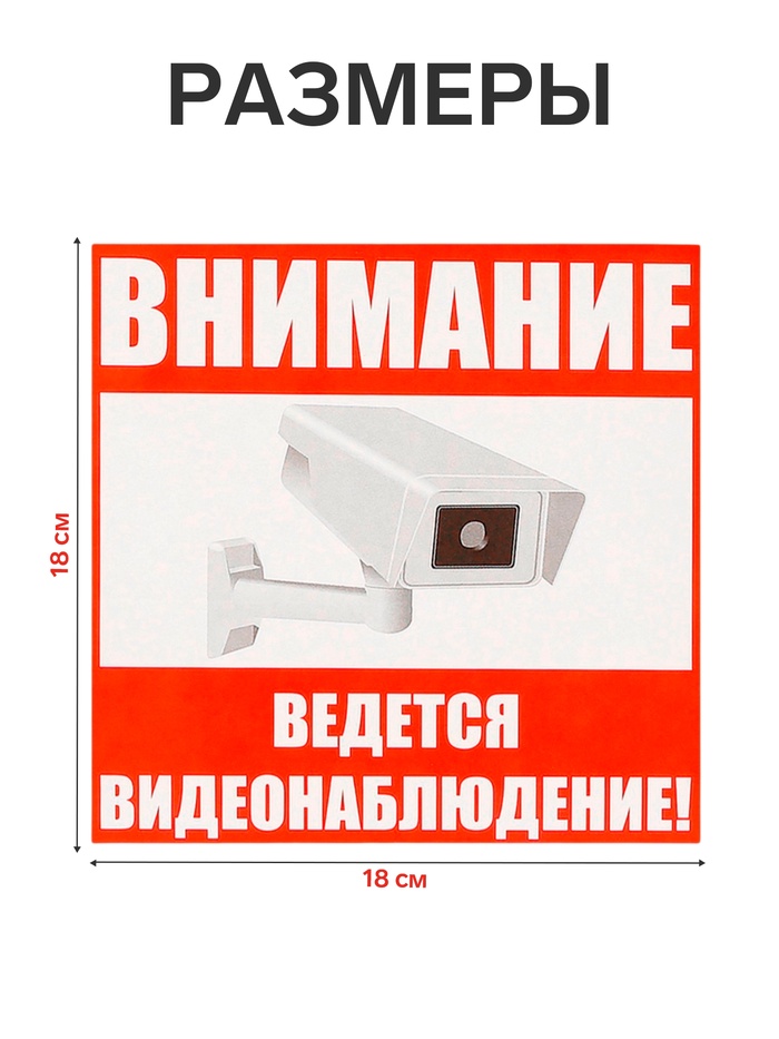 Наклейка знак «Внимание! Ведется видеонаблюдение!», 18×18 см — Характеристики