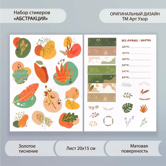 Наклейки бумага "Абстракция" набор 2 листа 20х15 см — Характеристики