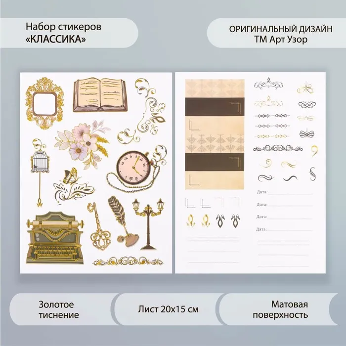 Наклейки бумага "Классика" набор 2 листа 20х15 см — Характеристики