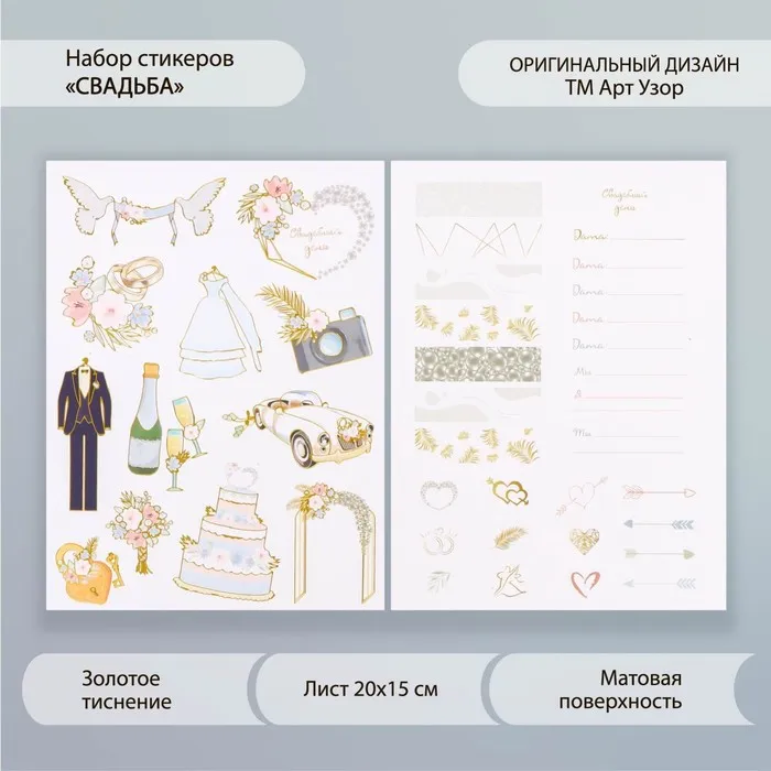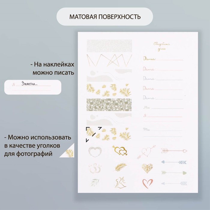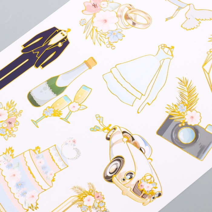 Наклейки бумага "Свадьба" набор 2 листа 20х15 см — Характеристики