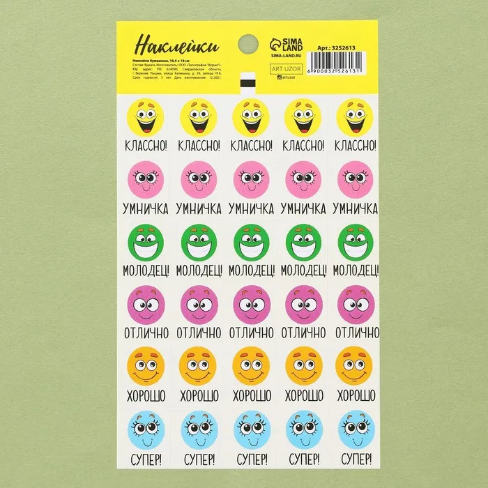 Наклейки бумажные оценки "Хорошее настроение", 10,5 х 18 см — Характеристики