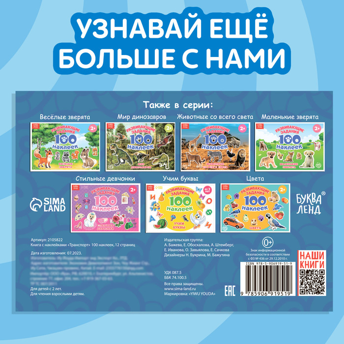 В альбоме представлено 100 наклеек с красочными изображениями воздушного, земного, водного видов транспорта. Яркие картинки положительно влияют на визуальное восприятие малыша, память и воображение.