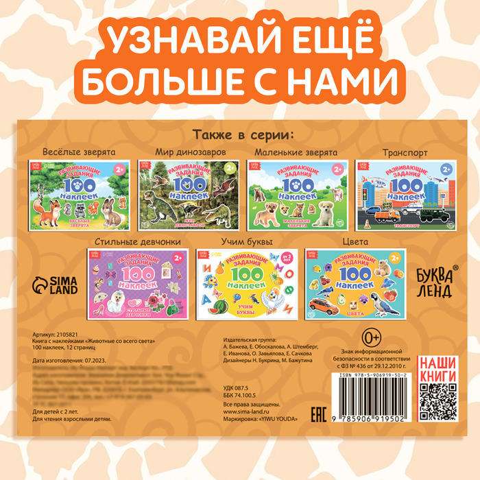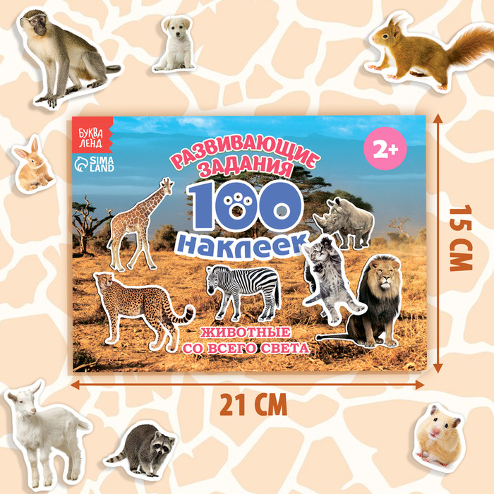 В альбоме представлено 100 наклеек с красочными изображениями животных. Яркие картинки положительно влияют на визуальное восприятие малыша, память и воображение.