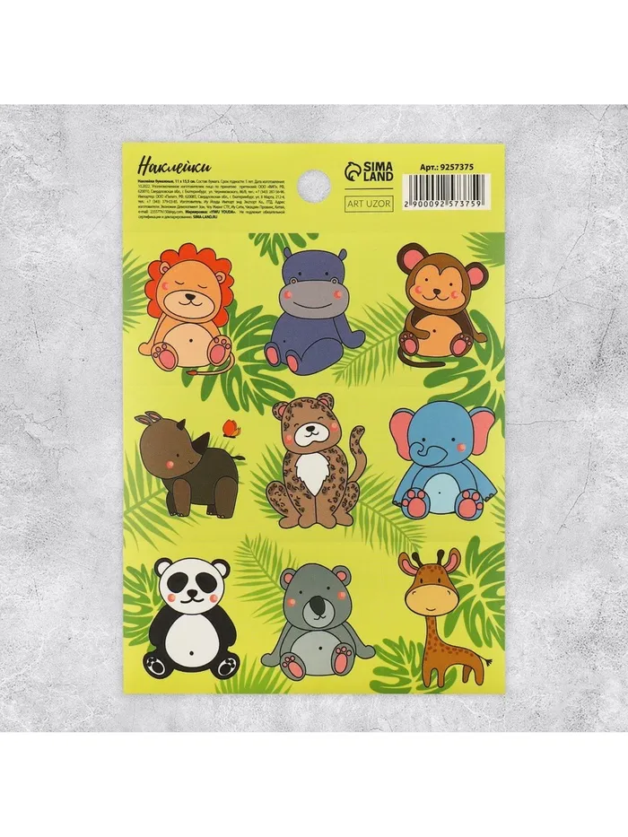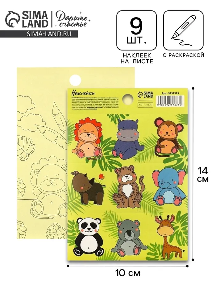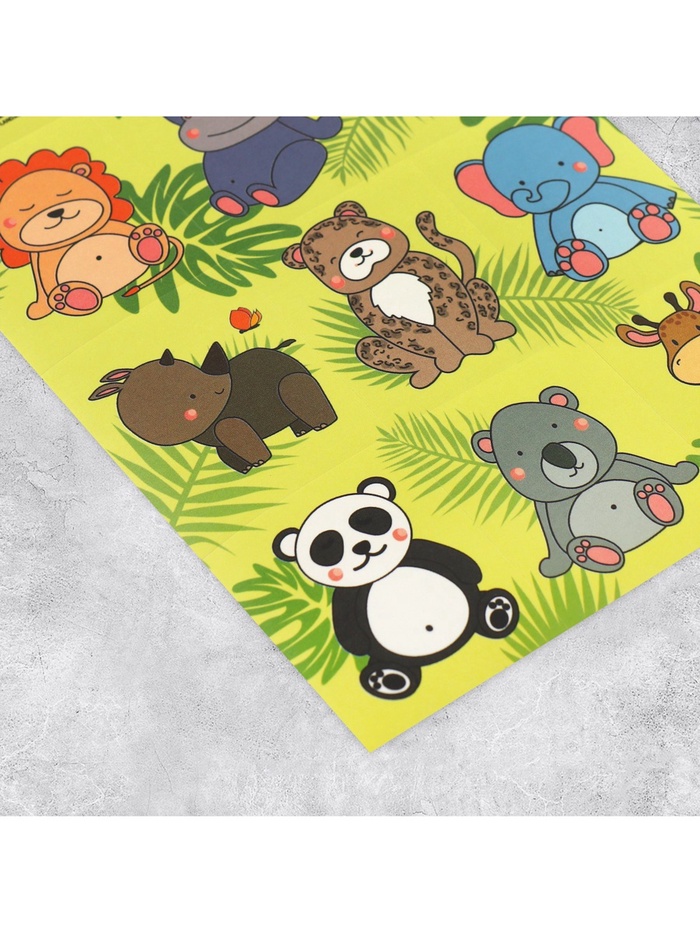 Наклейки детские бумажные «Джунгли», c раскраской на обороте, 10 х 14 см — Характеристики