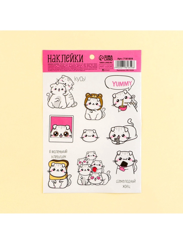 Наклейки детские бумажные «Кусь», 11 х 16 см — Характеристики