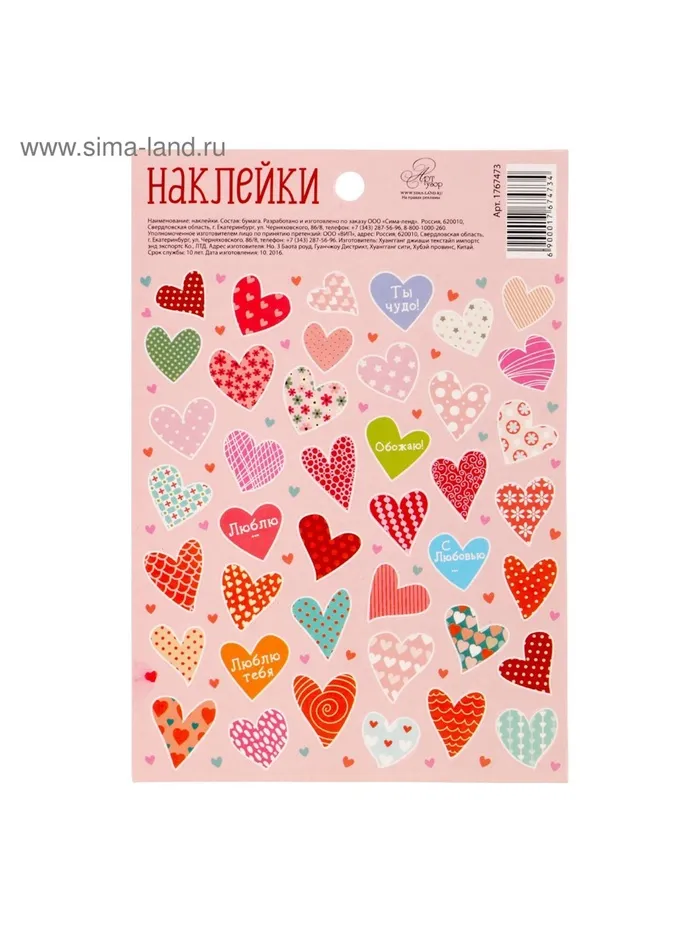 Наклейки детские бумажные «Сердечки», 10 х 14 см — Характеристики