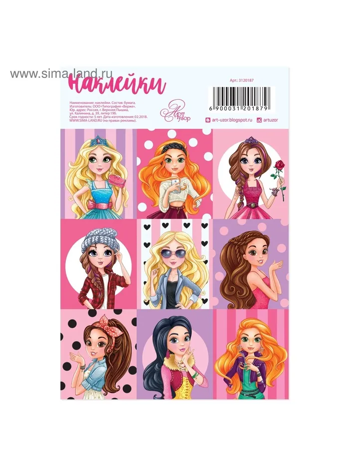 Наклейки детские бумажные «Стильные девчонки», c раскраской на обороте, 11 х 15.5 см — Характеристики
