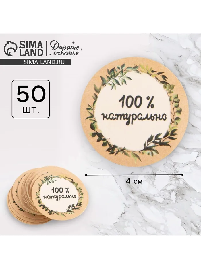 Наклейки для бизнеса «100 % натурально», 4×4 см, 50 шт. — Характеристики