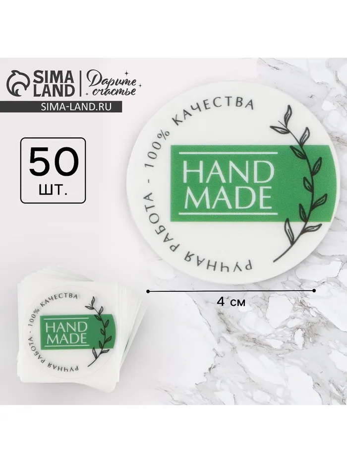 Наклейки для бизнеса Hand made, белые, 50 шт, 4 х 4 см — Характеристики