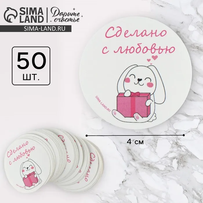 Наклейки для бизнеса и подарков «Сделано с любовью», 50 шт., 4×4 см — Характеристики