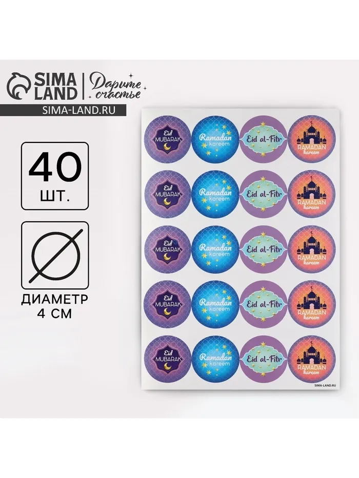 Наклейки для бизнеса и подарков «Светлый праздник Рамадан», 40 шт, 4 х 4 см — Характеристики