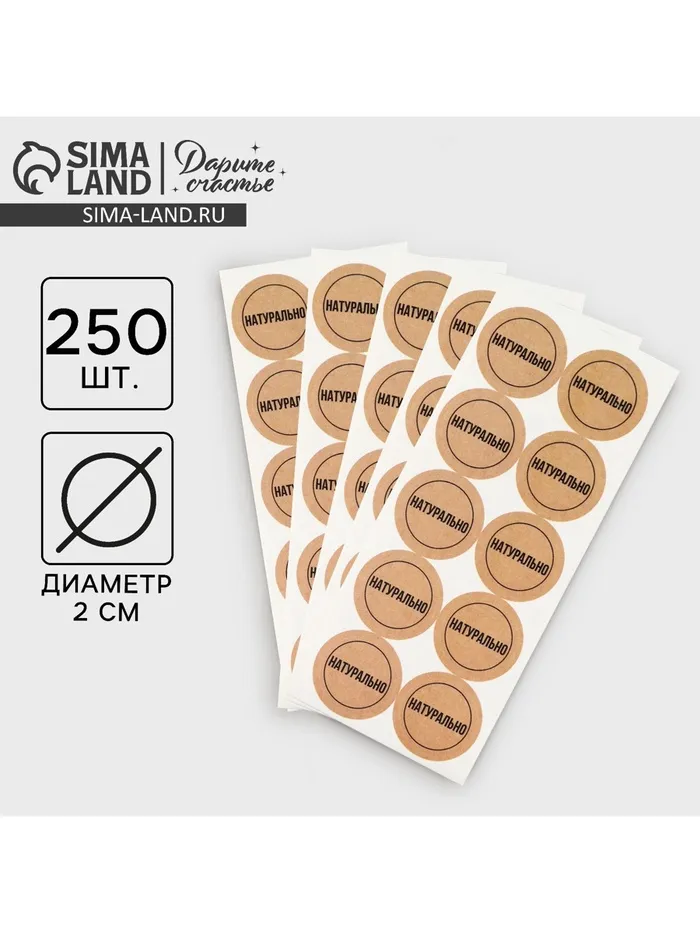 Наклейки для бизнеса «Натурально», 250 шт, 2 х 2 см — Характеристики