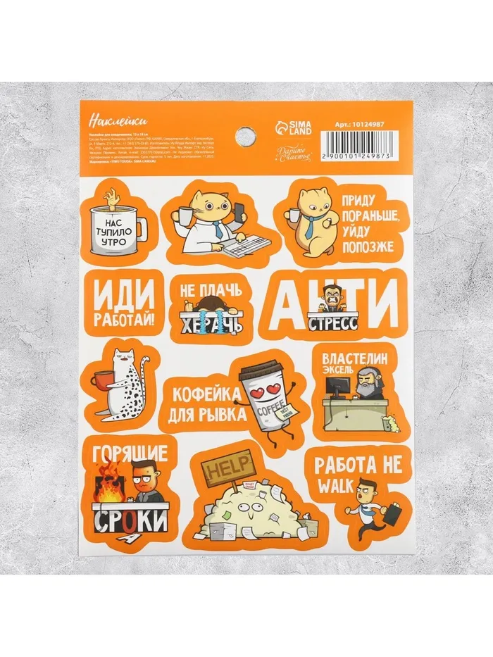 Наклейки для ежедневника «Иди работай», 13 х 18 см — Характеристики