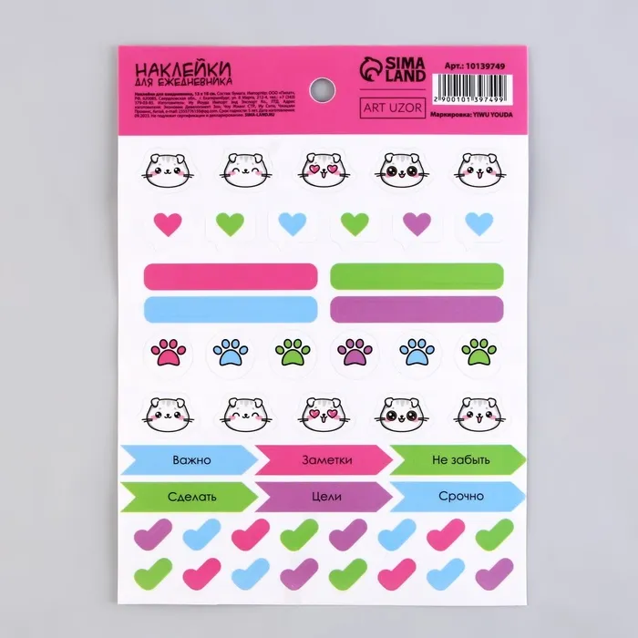 Наклейки для ежедневника «Заметки», винил, 13 х 18 см — Характеристики