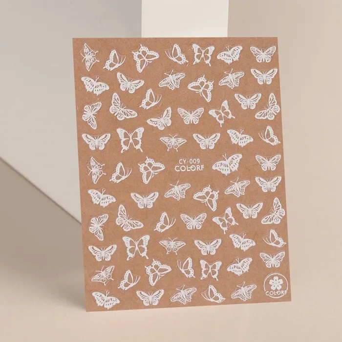 Наклейки для ногтей «Бабочки», флуоресцентные, белые — Характеристики