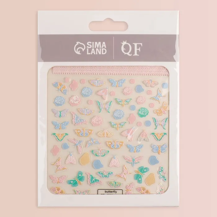 Наклейки для ногтей «Бабочки и цветы», объёмные, разноцветные — Характеристики