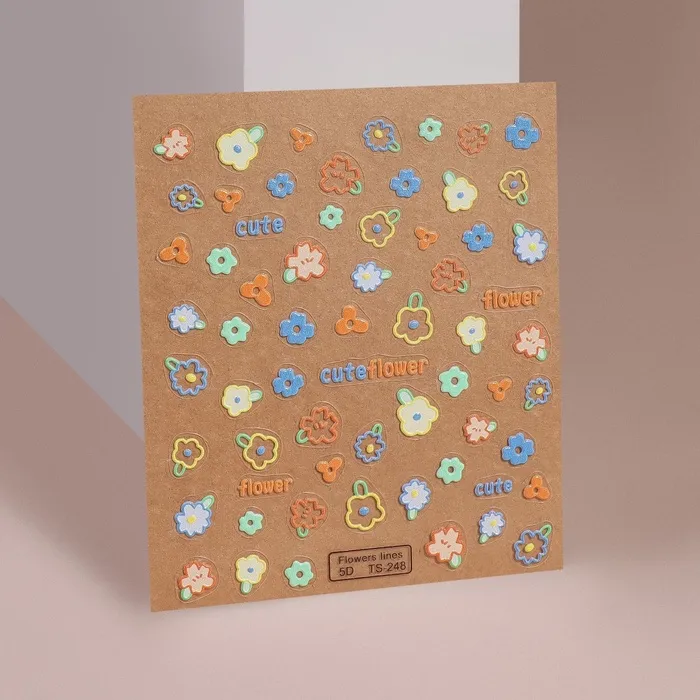 Наклейки для ногтей «Cute flowers», объёмные, разноцветные