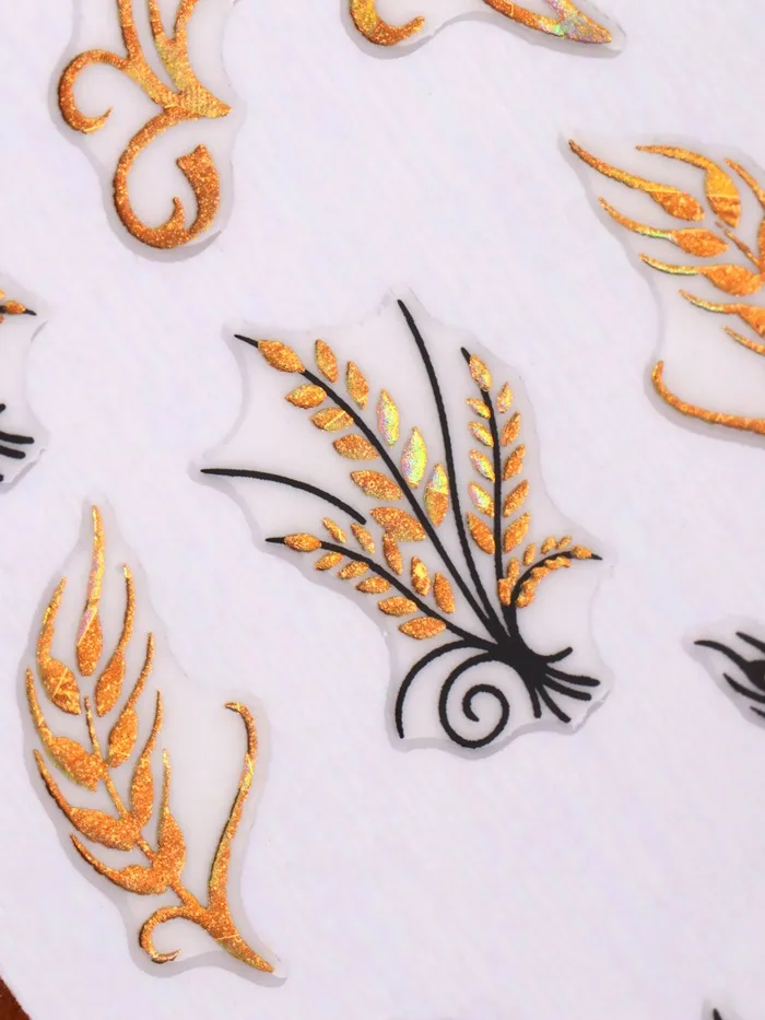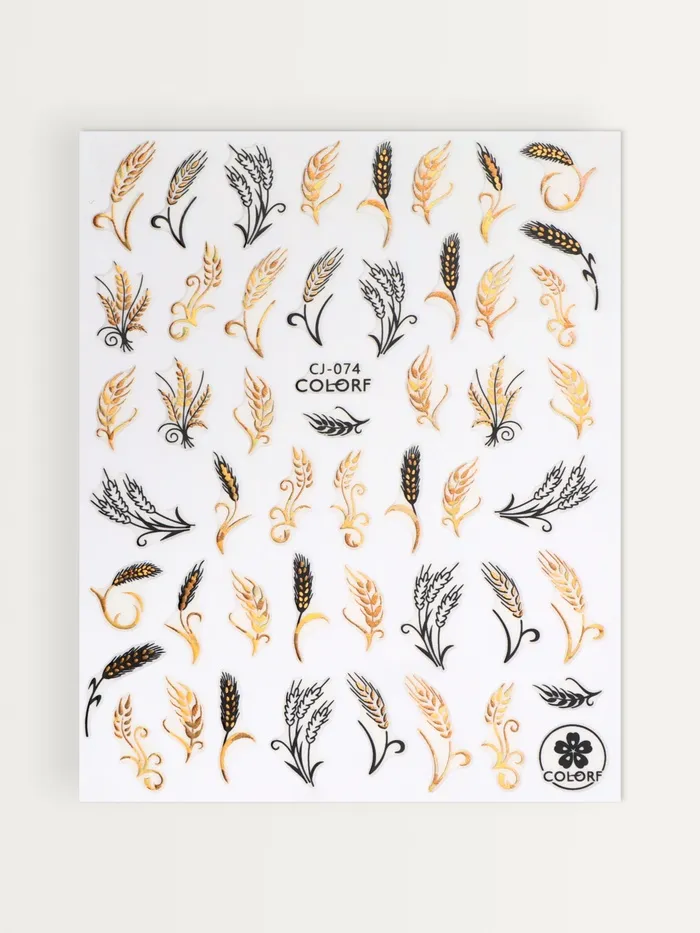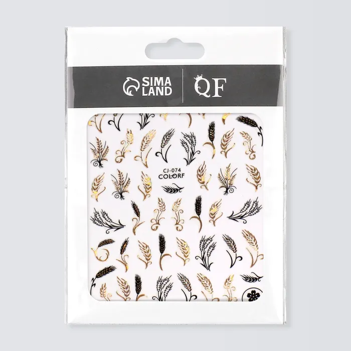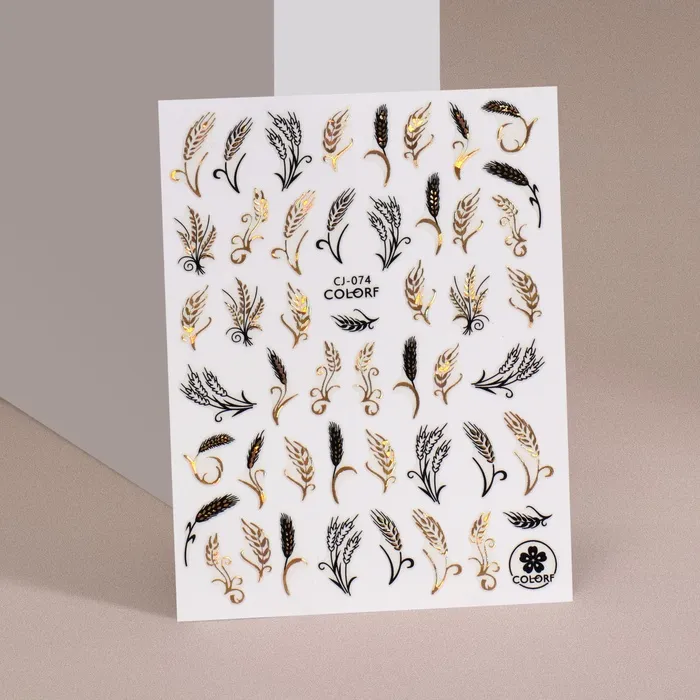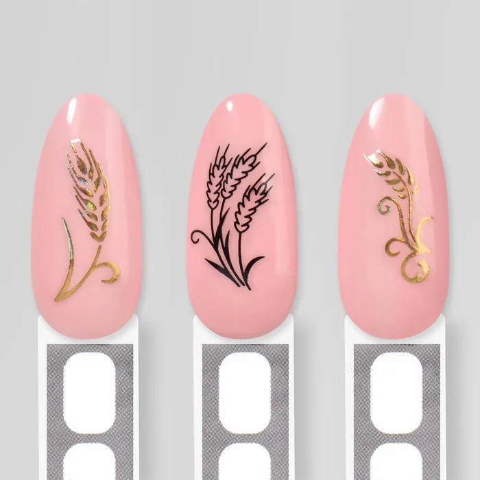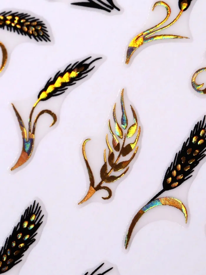 Наклейки для ногтей «Колосья», фольгированные, цвет золотистый, чёрный — Характеристики