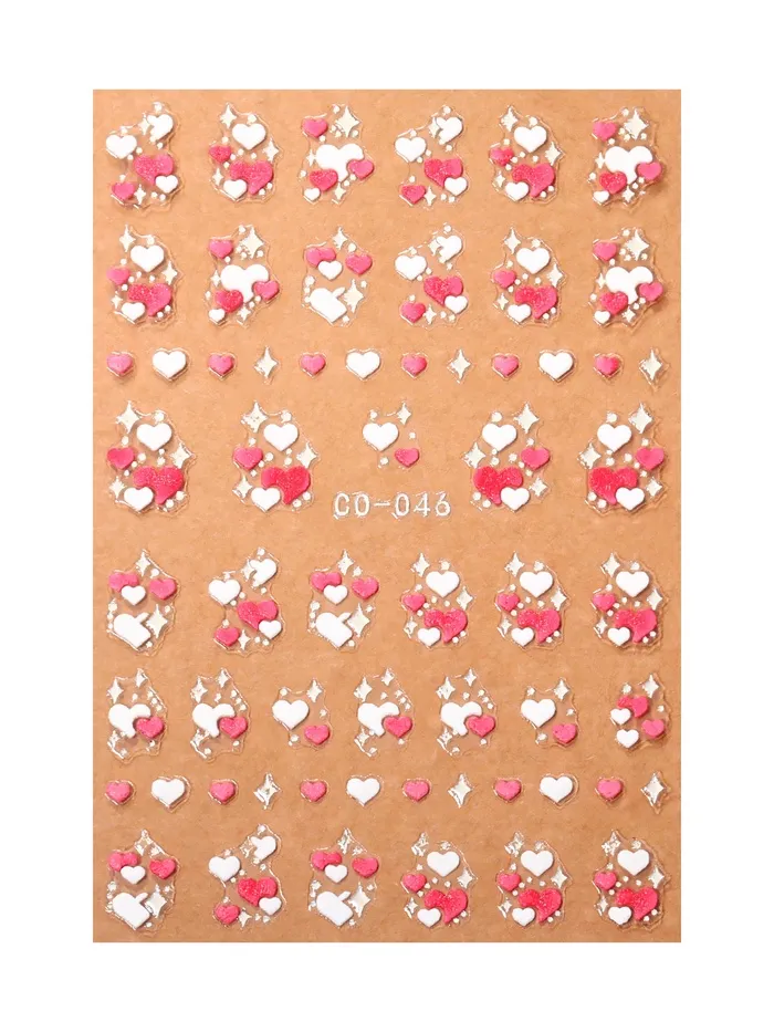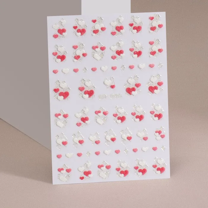 Наклейки для ногтей «Сердечки», объемные, розовые, белые — Характеристики