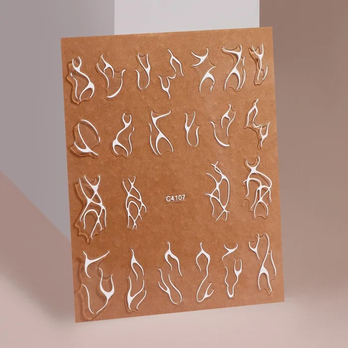 Каждая наклейка изготовлена из качественных пластиковых и бумажных материалов, что обеспечивает долговечность и лёгкость в использовании. Они идеально подходят как для свадебных, так и для универсальных мероприятий, придавая вашему маникюру элегантный абстрактный вид с изысканными узорами.