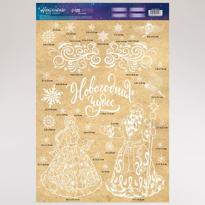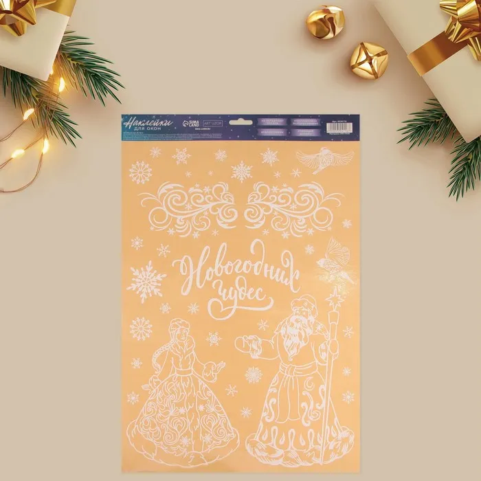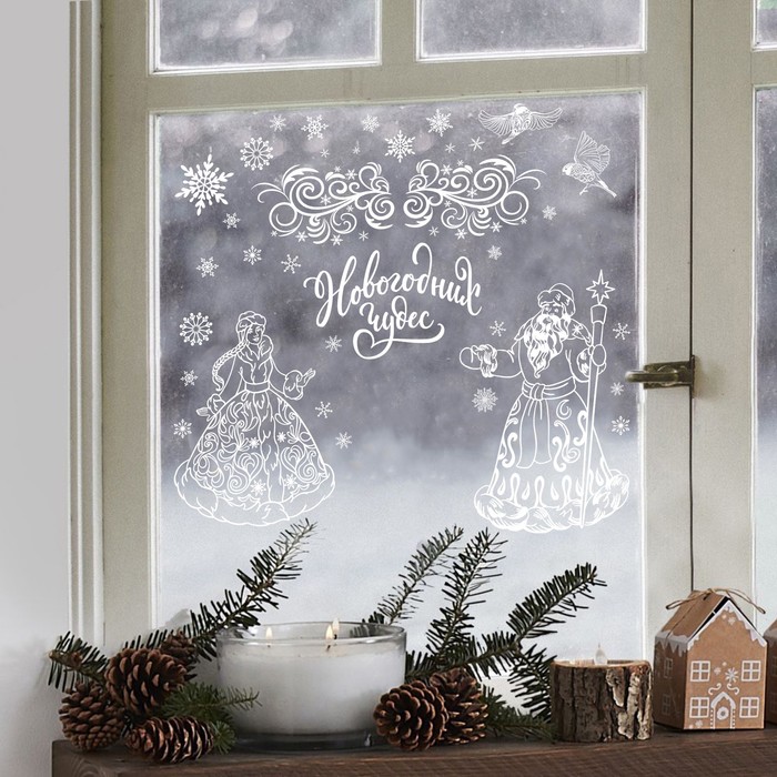 Наклейки для окон «Дед Мороз и Снегурочка», многоразовая, 33 х 50 см — Характеристики