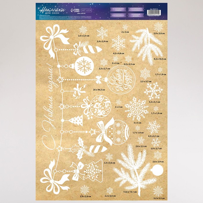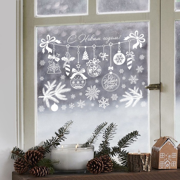 Наклейки для окон «Ёлочные игрушки», многоразовая, 33 х 50 см — Характеристики