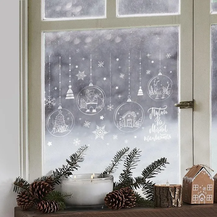 Наклейки для окон «Новогодние шары», многоразовая, 33 х 50 см — Характеристики