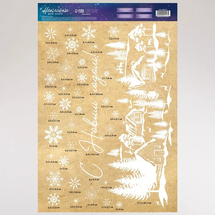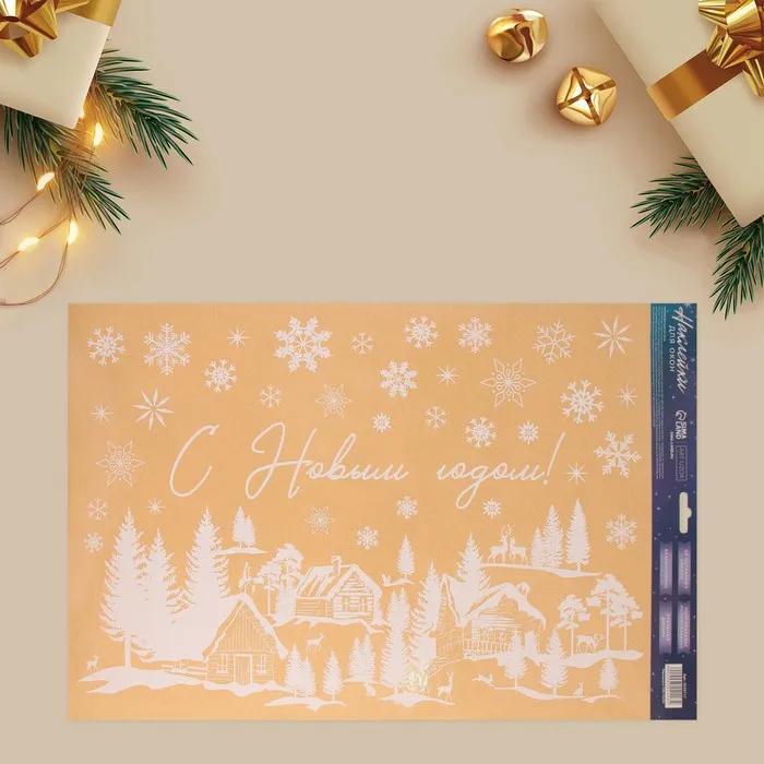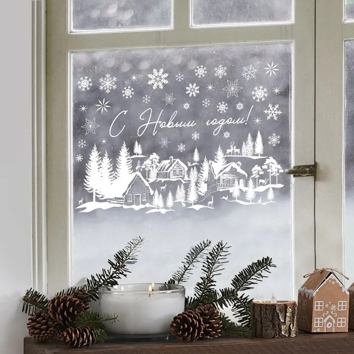 Наклейки для окон «Зимняя деревушка», многоразовая, 33 х 50 см — Характеристики