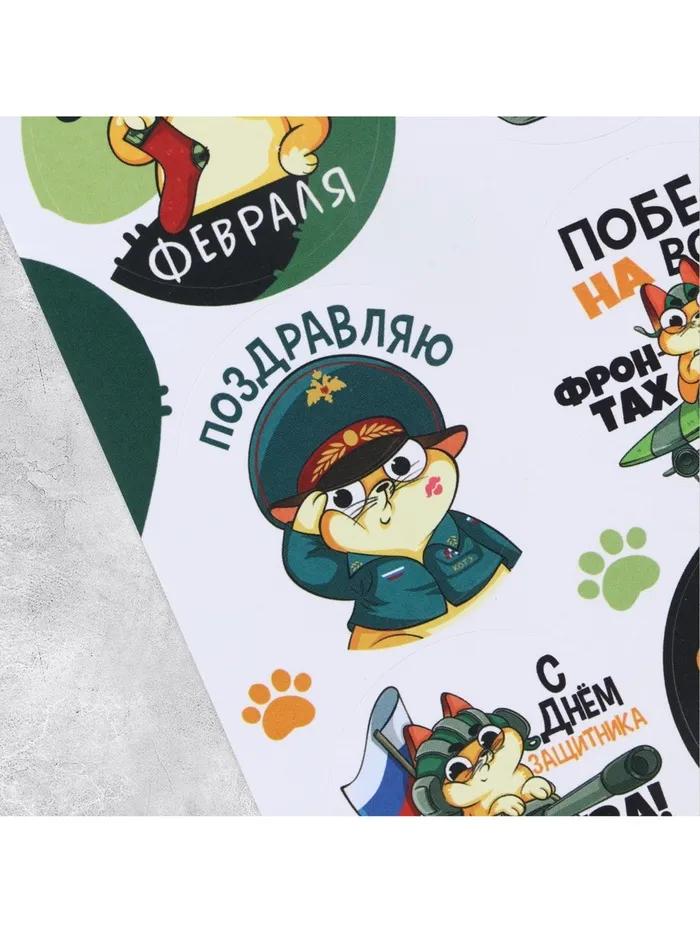 Наклейки для подарков и цветов «23 февраля», кот, 9 х 16 см — Характеристики