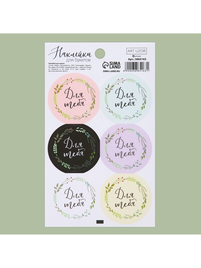 Наклейки для подарков и цветов «Для тебя», 16 х 9 см — Характеристики