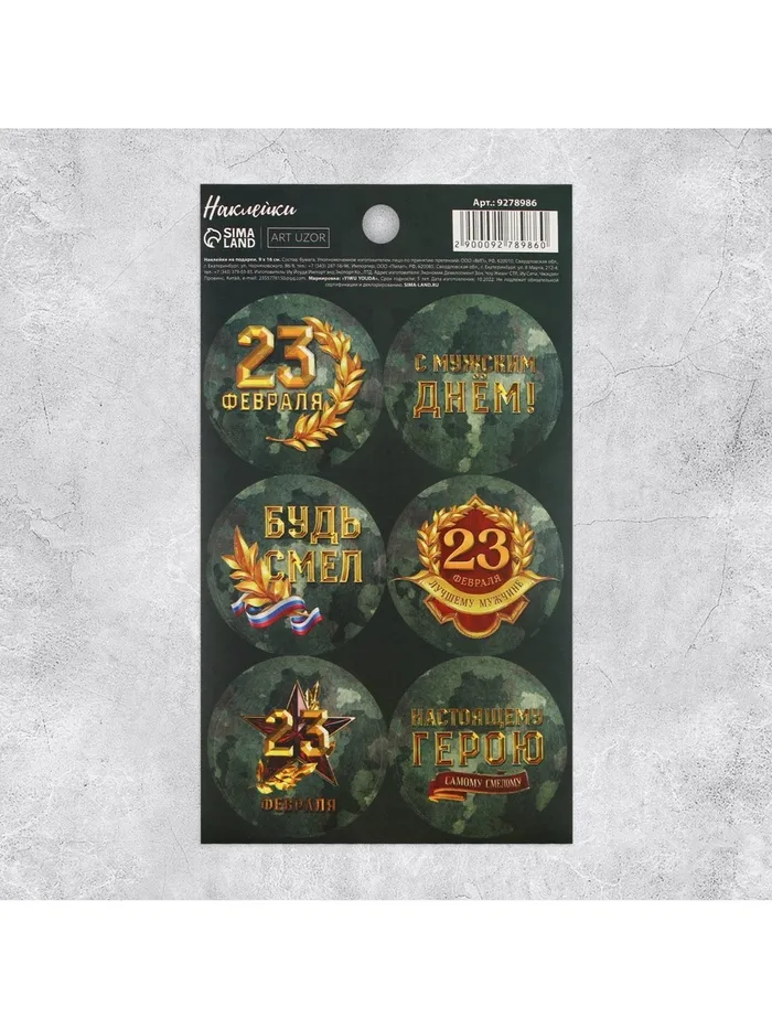 Наклейки для подарков и цветов «С 23 февраля»,на подарки , 9 х 16 см — Характеристики