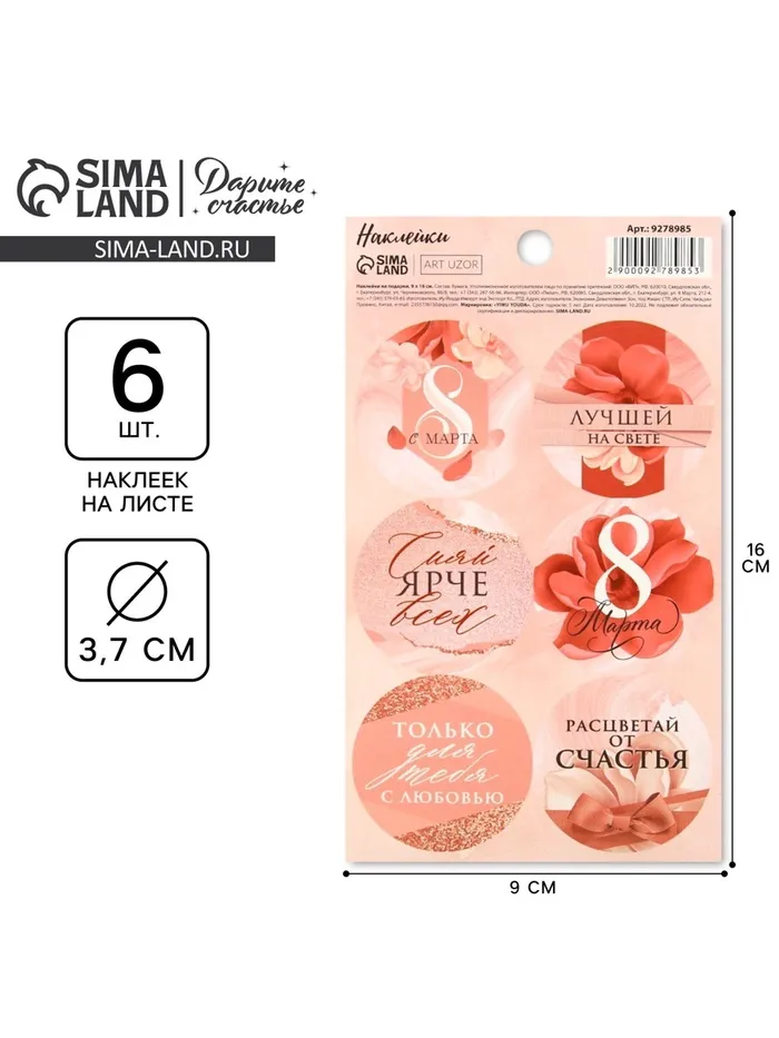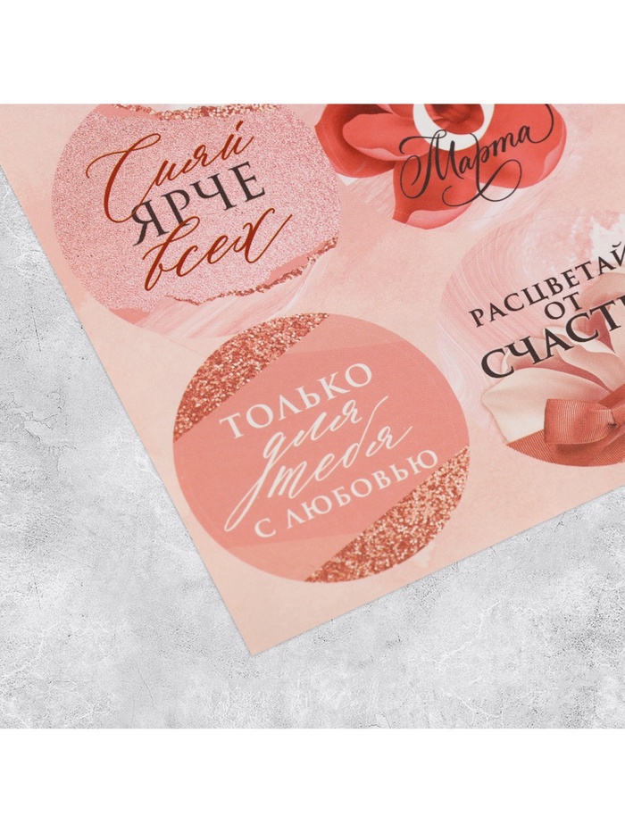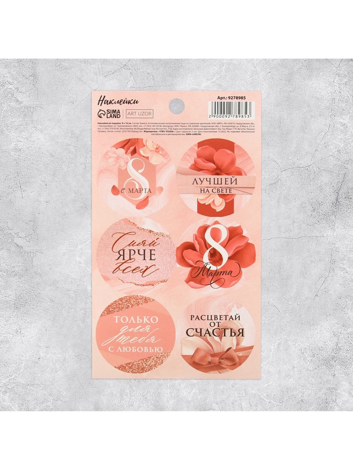 Наклейки для подарков и цветов, «С 8 марта», на подарки , 9 х 16 см — Характеристики