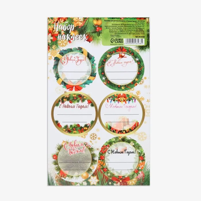 Наклейки для цветов и подарков «С Новым Годом!», 16×9.5 см — Характеристики