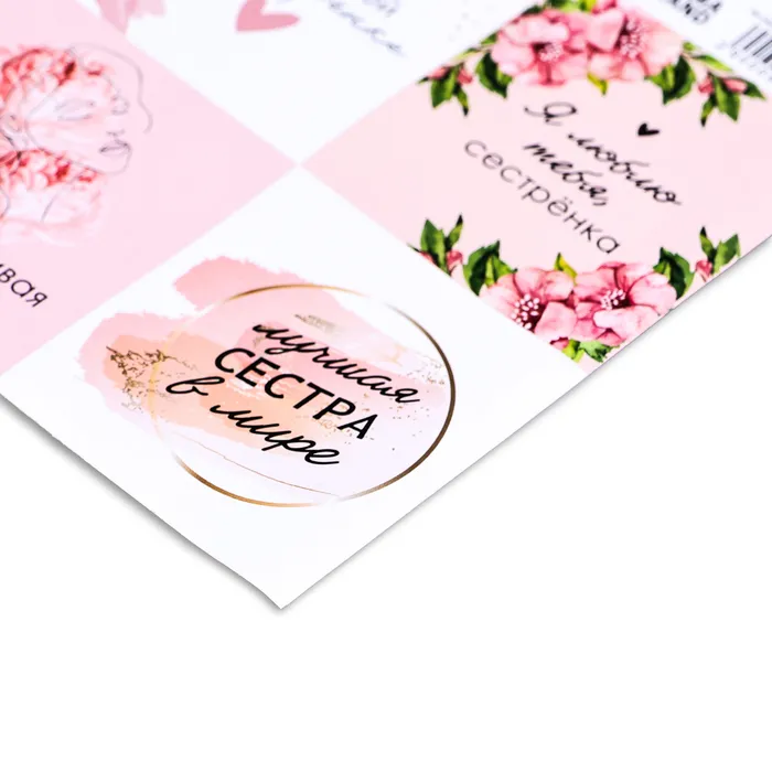 Наклейки для цветов и подарков «Сестренке», 15×11.5 см — Характеристики