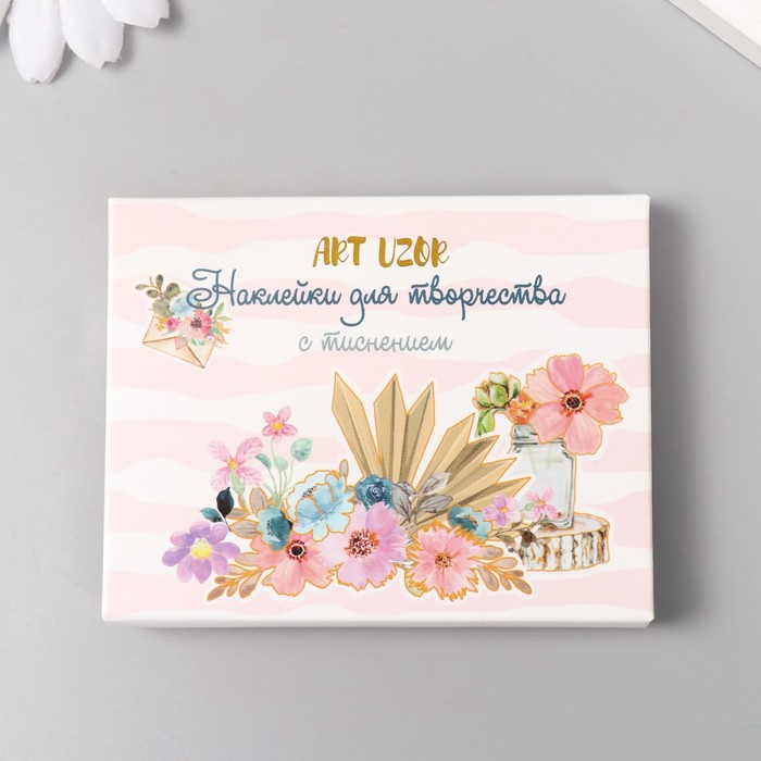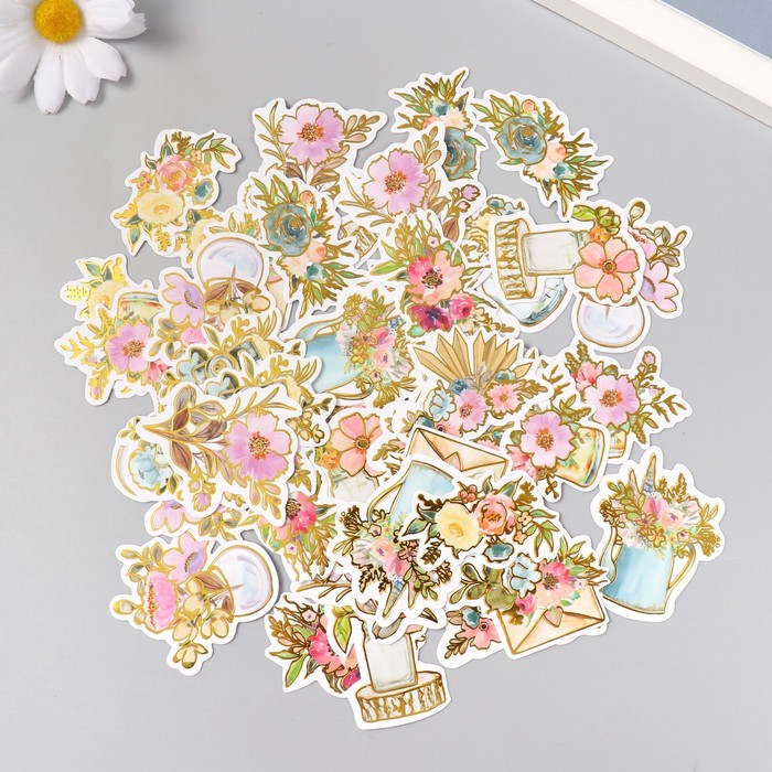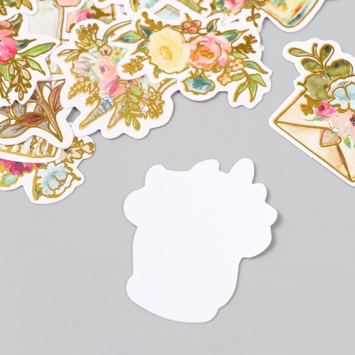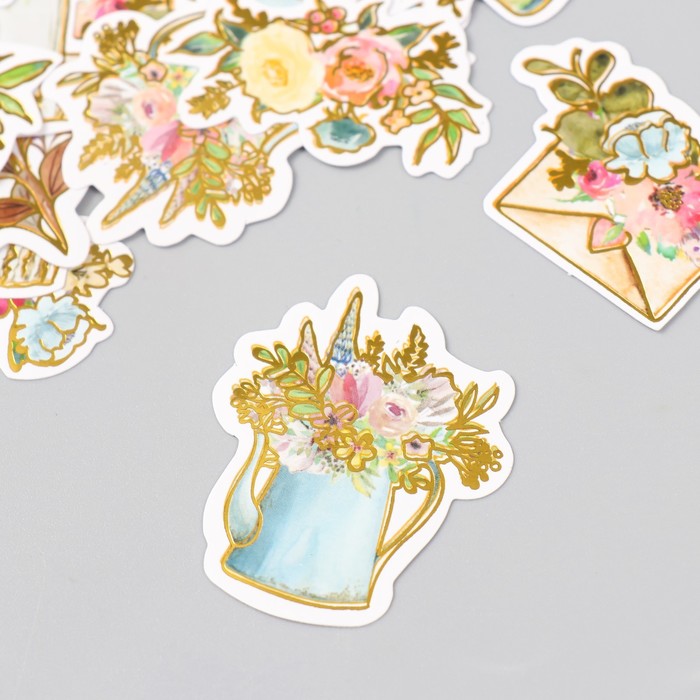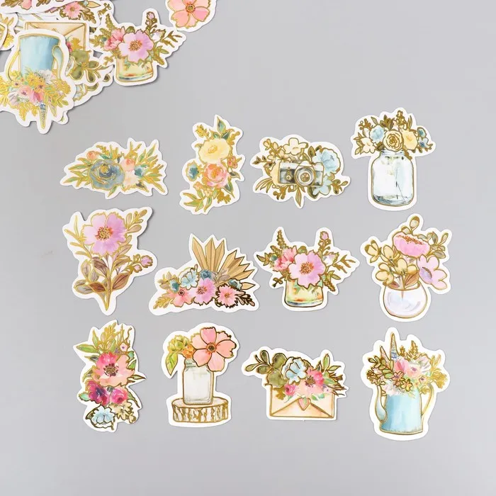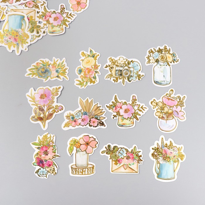 Наклейки для творчества "Акварельные цветы" тиснение золото набор 48 шт 9х7х0,8 см — Характеристики