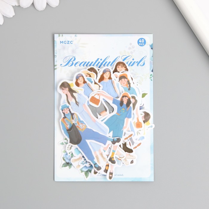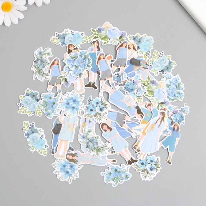 Наклейки для творчества «Девушки и цветы. Голубое настроение», 4×8 см, набор 40 шт., 0.5×12×8 см — Характеристики