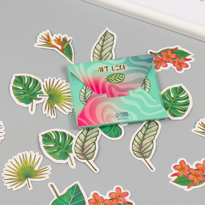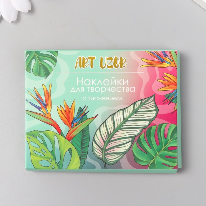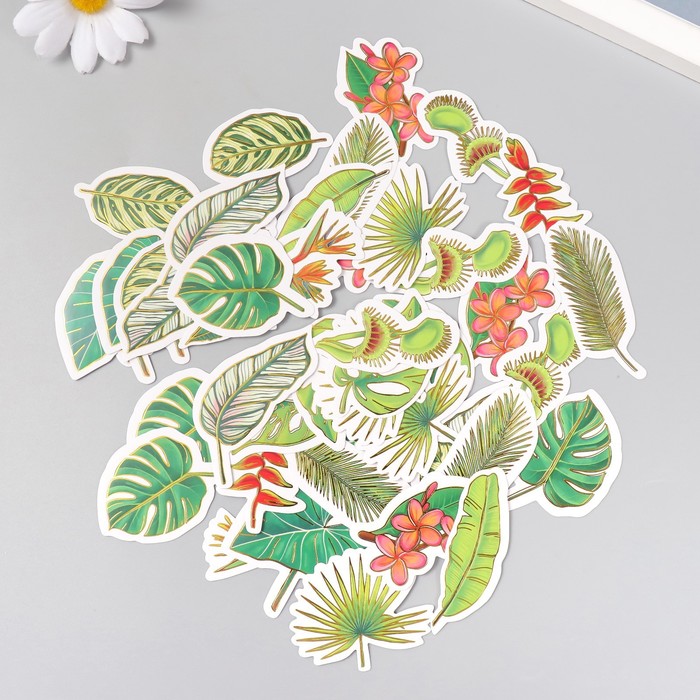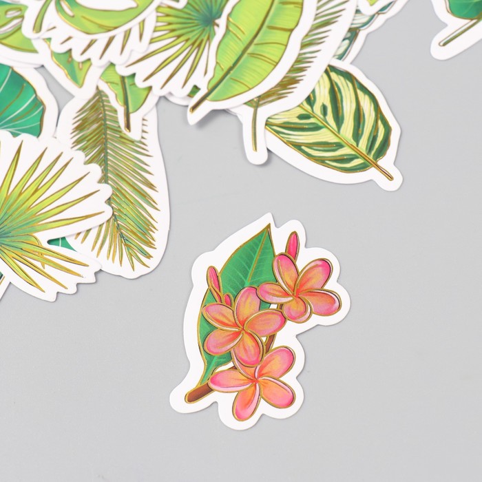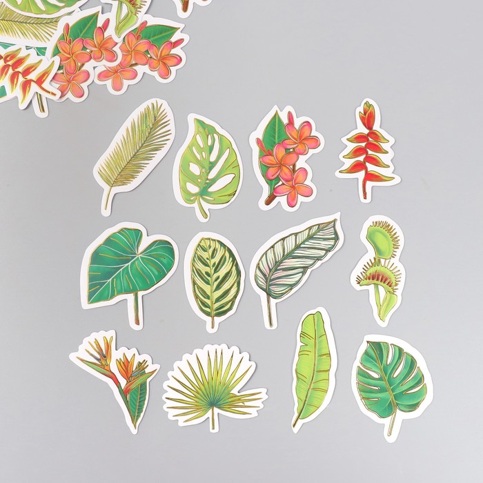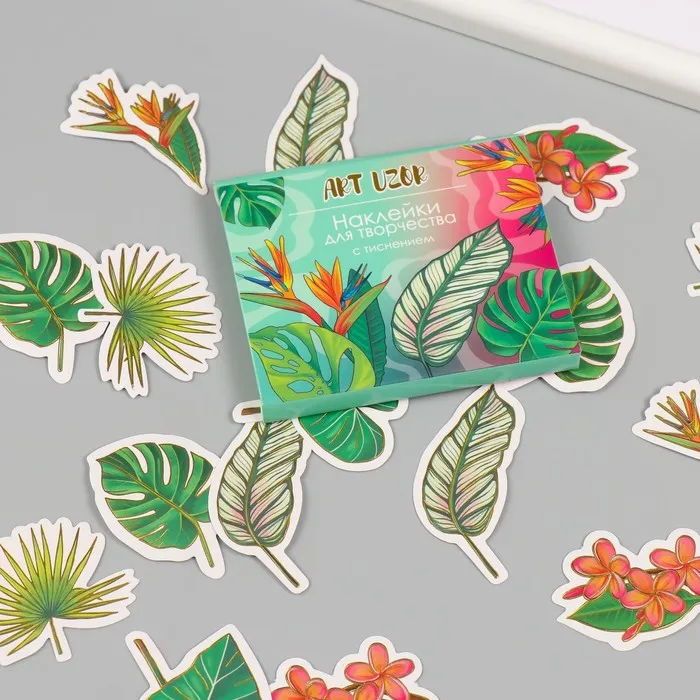 Наклейки для творчества "Экзотические листья" тиснение золото набор 48 шт 9х7х0,8 см — Характеристики