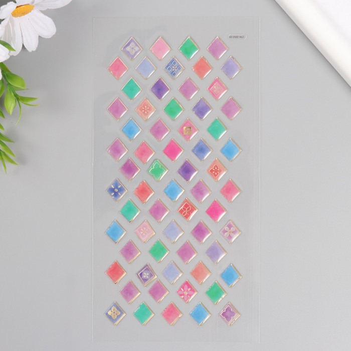 Наклейки для творчества пластик "Разноцветная плитка ромбы" 9,3х20,4 см — Характеристики