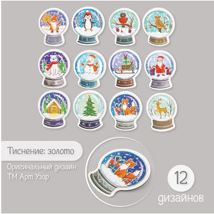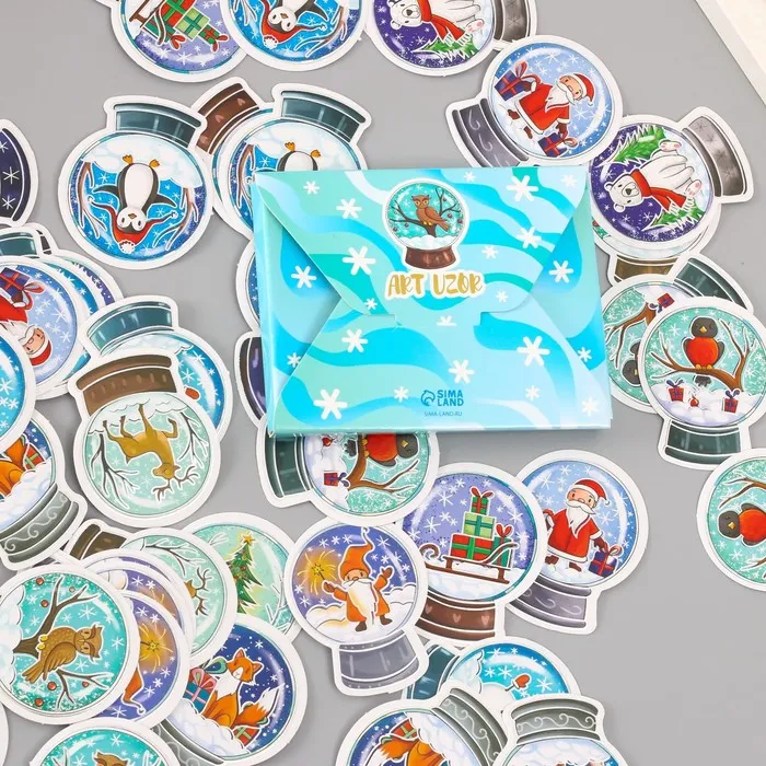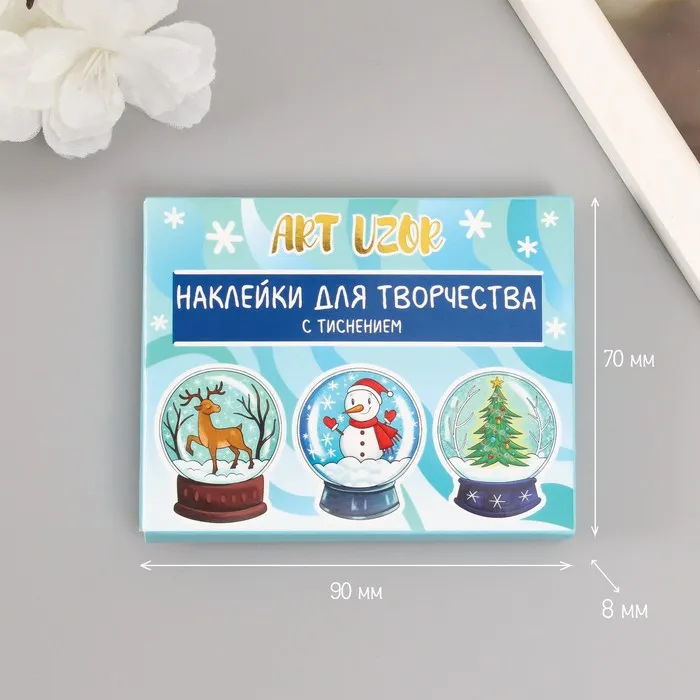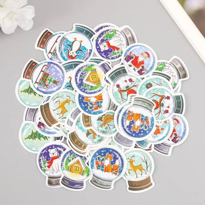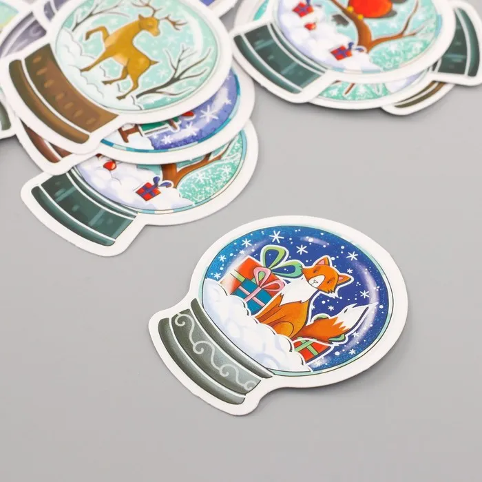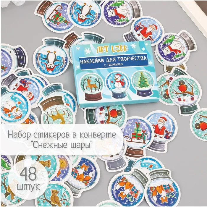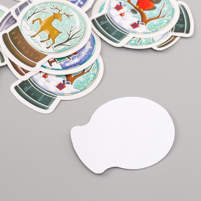 Наклейки для творчества "Снежные шары" тиснение серебро набор 48 шт 9х7х0,8 см — Характеристики
