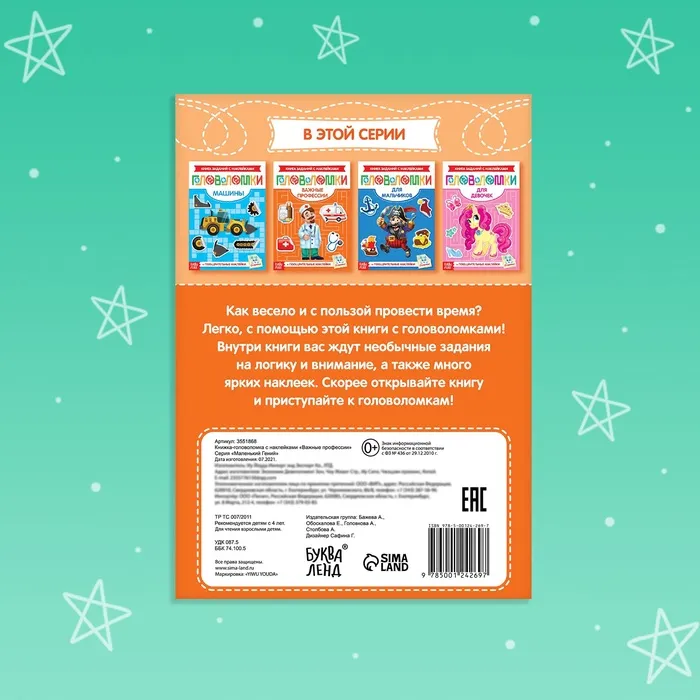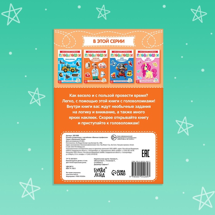 С помощью книги «Головоломки. Важные профессии» ваш ребёнок будет не только играть, но и учиться новому. Каждое правильно выполненное задание можно отметить специальной наклейкой-оценкой, что стимулирует интерес и мотивацию к дальнейшему обучению.