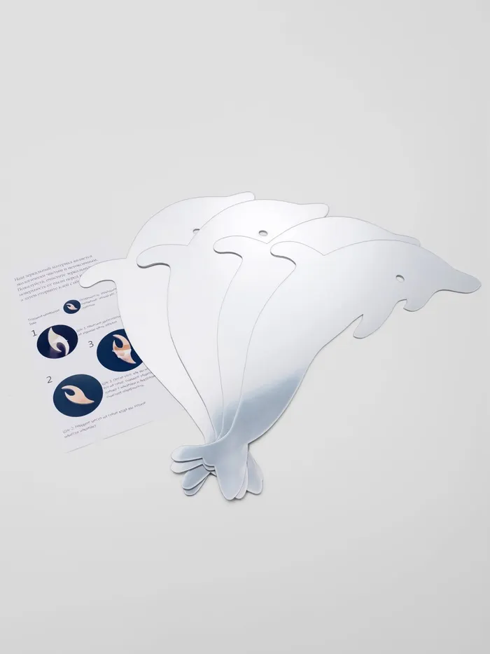 Погрузитесь в мир морской романтики с этим оригинальным набором зеркальных наклеек в форме дельфинов! Комплект включает четыре элемента размером 30x15 см, изготовленные из высококачественного акрила. Каждая наклейка имеет зеркальную поверхность, которая отражает свет и придает декору дополнительную объемность и глубину.