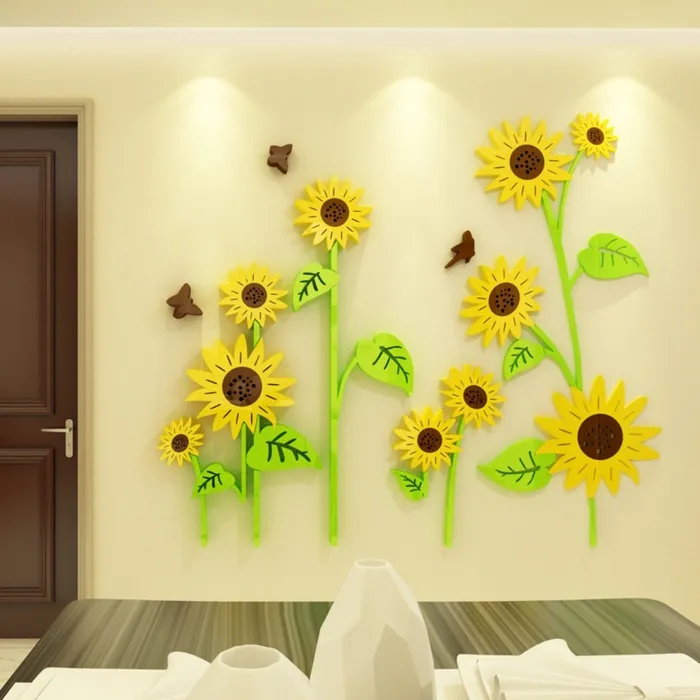 Каждый элемент выполнен из качественного акрила с зеркальными и фигурными деталями, что добавляет интерьеру глубину и игру света. Тёплая гамма жёлтых и зелёных оттенков создаёт атмосферу летнего поля, наполняя комнату теплом даже в пасмурные дни.
