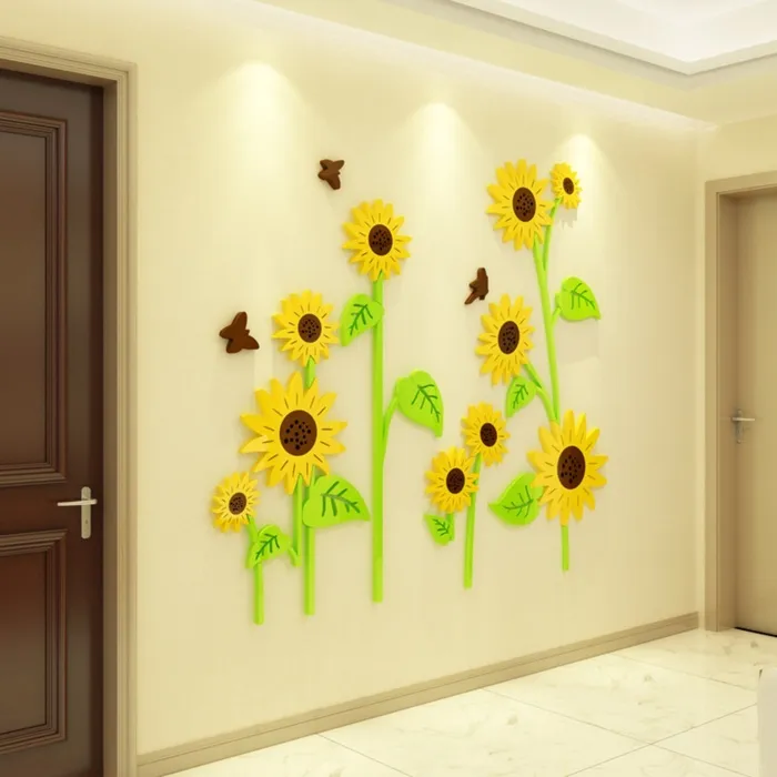 Солнечное настроение и уют в детской комнате — вот что подарит эта красочная композиция из подсолнухов. Объёмные элементы создают эффект живого цветника на стене, превращая обычное пространство в волшебный сад, где растёт счастье.