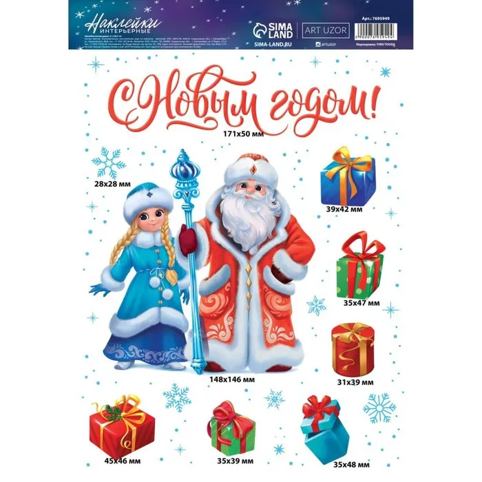 Наклейки интерьерные новогодние «С Новым годом», 21 х 29,7 см — Характеристики