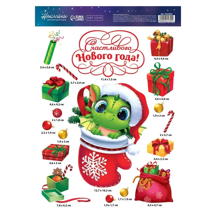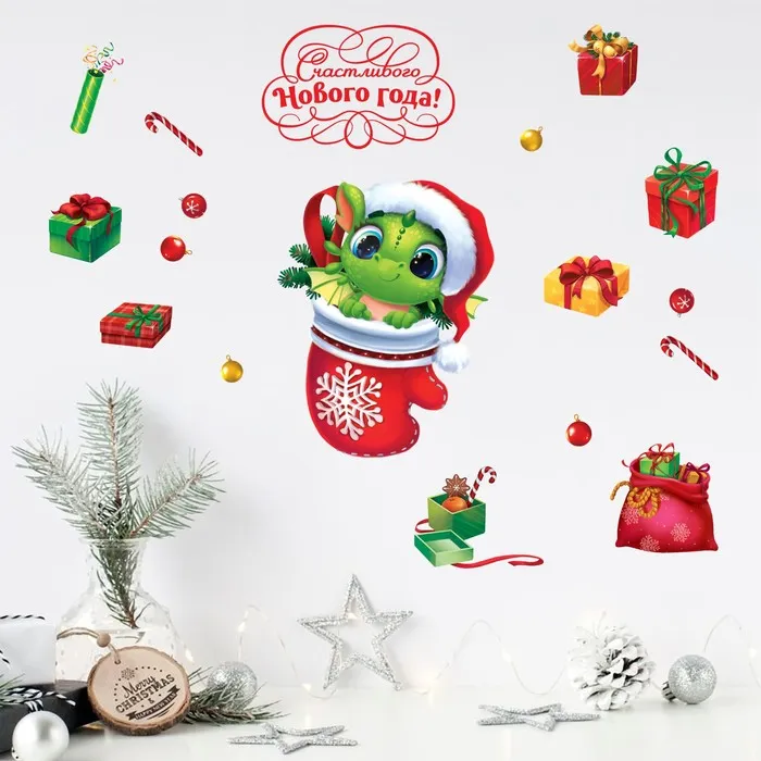 Наклейки интерьерные новогодние «Счастливого Нового года», 21 х 29.7 см — Характеристики