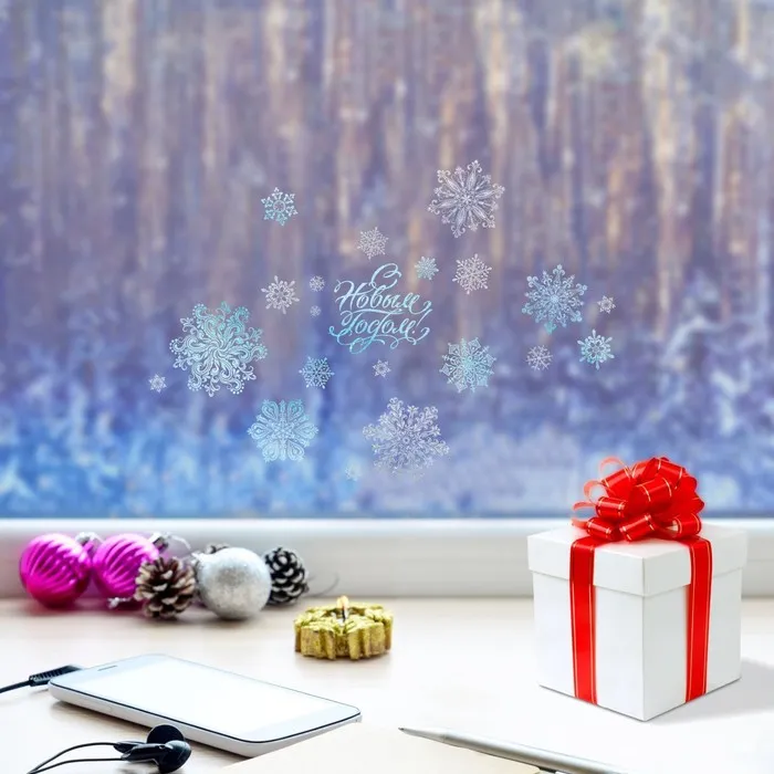 Наклейки интерьерные новогодние «Сверкающие снежинки», 21х29.7 см — Характеристики