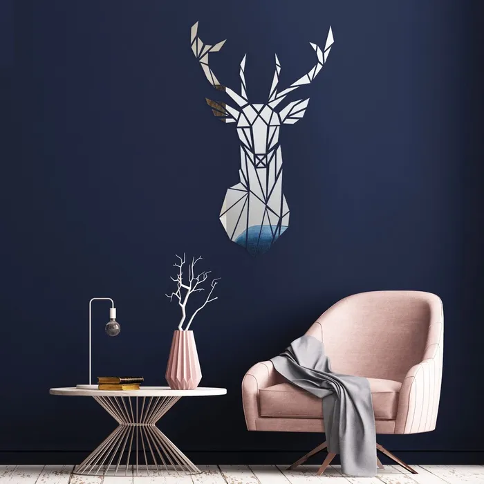 Добавьте вашему интерьеру нотку природы и благородства с этим впечатляющим зеркальным панно в виде оленя! Набор включает 66 элементов различной формы, изготовленных из высококачественного акрила, которые складываются в изображение верхней части туловища оленя (головы и шеи). Общий размер панно составляет 72x43 см, что делает его заметным и выразительным элементом декора.