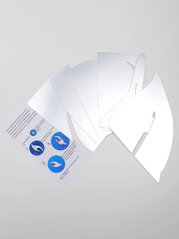 - Наклейка состоит их трёх слоев — виниловой основы с клеевым слоем, защитной подложки снизу и прозрачной плёнки сверху. Не снимайте защитную плёнку с глянцевой части изделия, пока не закончите работы.