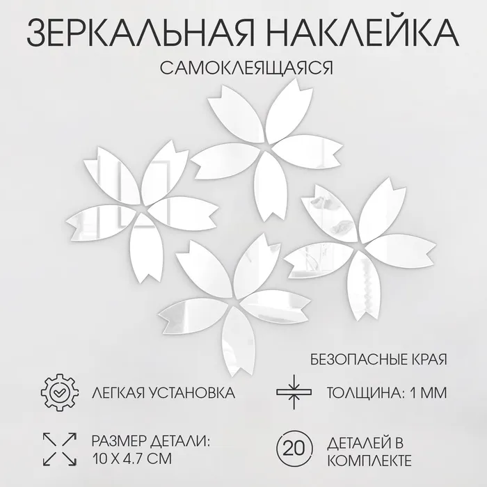 Наклейки интерьерные "Пёрышко", зеркальные, декор на стену, панно 73х18 см, 6 элементов — Характеристики